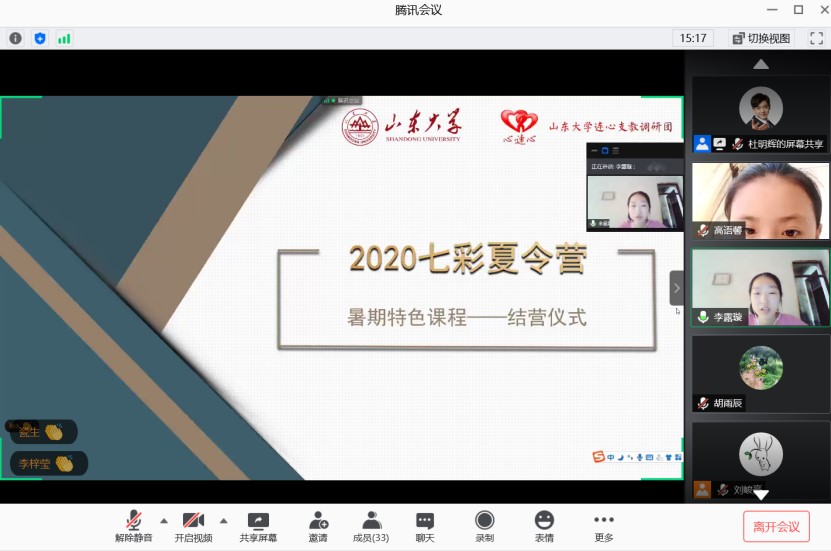 近日,山东大学连心支教调研团第二期“七彩夏令营”线上特色支教活动举办结营仪式,至此,本次线上支教活动圆满结束。