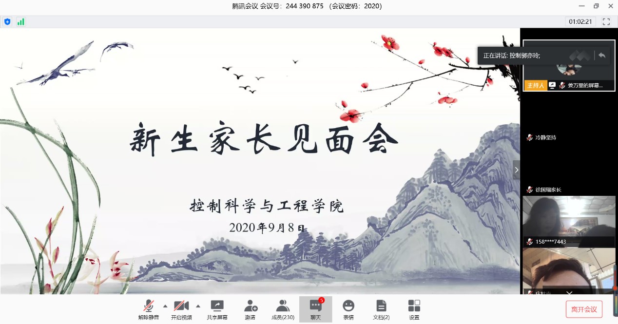 疫情形势下,本次线上新生家长见面会以线上视频会议的形式举行,一方面搭建起了控制学院与新生家长的沟通交流平台,拉近了学院老师与家长之间的距离,帮助各位新生家长更好地了解了学院,提升了家长对控制学院培养学生的信心,有利于促进家校沟通交流,助力学生的未来发展;另一方面,本次见面会践行了控制学院“德业融育”的教育理念,充分联合学院、教师与家长的协同联动力量,有利于推动学院下一步工作的顺利开展,促进家校共育,共同探索育人新格局,为培养高素质专业人才砥砺前行。