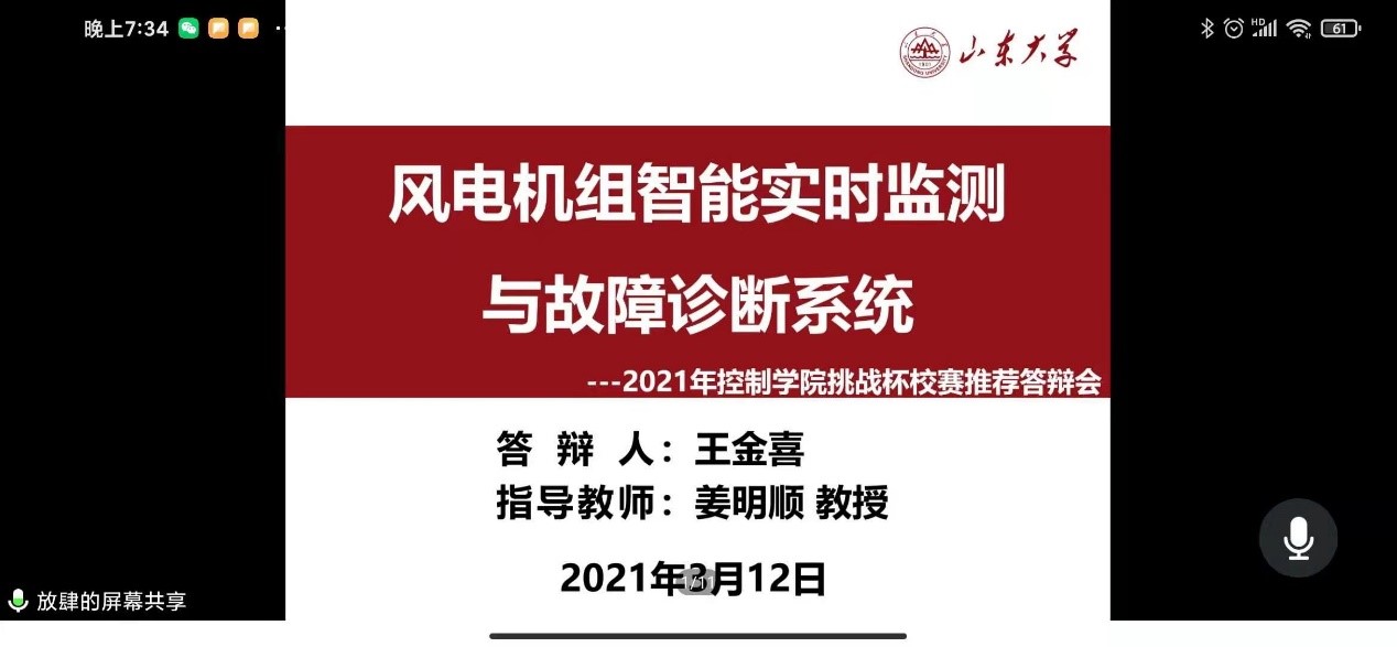 3月12日,控制学院第十七届“挑战杯”大学生课外学术科技作品竞赛评审答辩会顺利举行。本次会议采用线上答辩方式举行,共有12支队伍参加答辩,陈振学、刘春生、马晓鹏、柴汇等老师应邀担任本次答辩会的评委,团委书记刘慧慧、本科19级辅导员田庚参加会议。