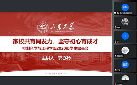 11月17日,控制学院于线上腾讯会议顺利召开2020级学生家长会,2020级辅导员郭亦玲担任主讲人,350位学生家长参会。