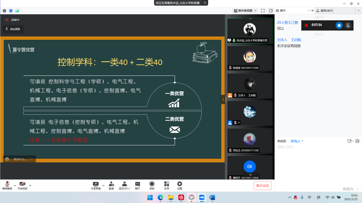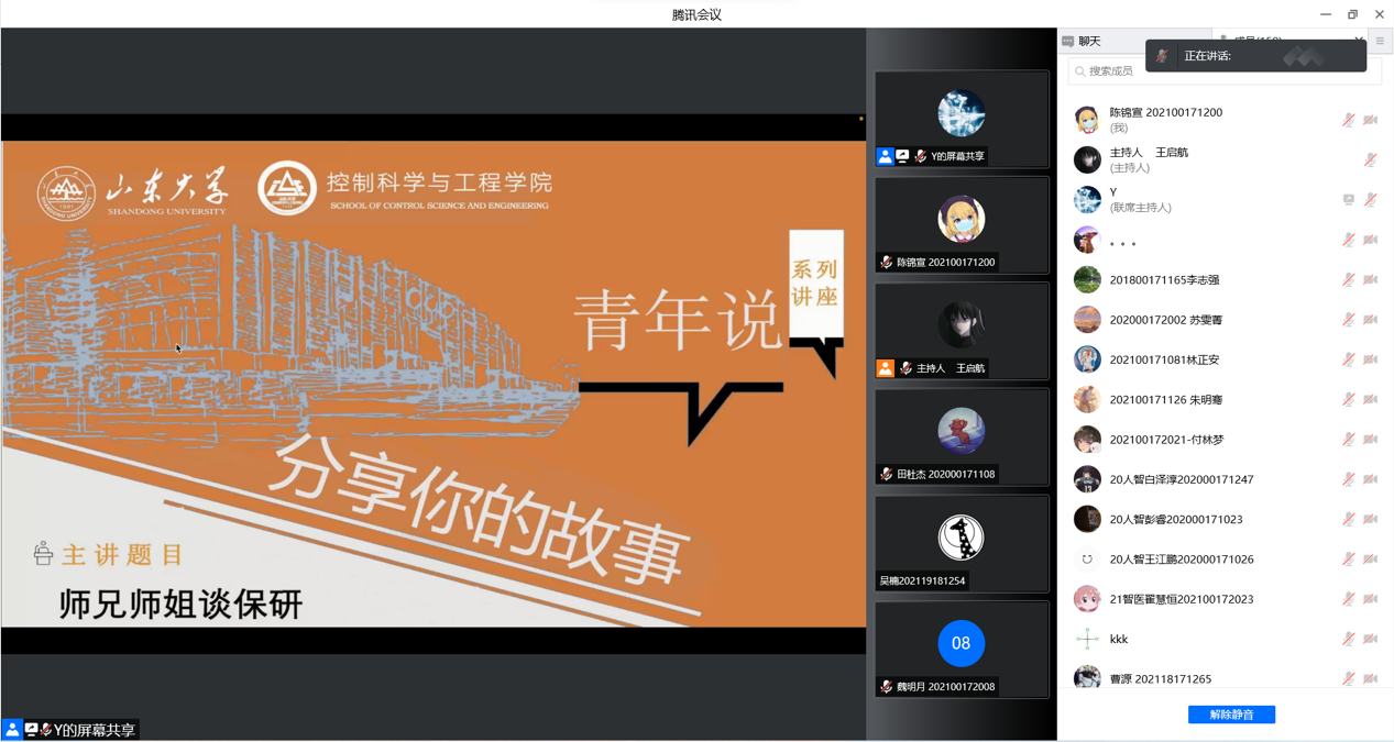 为鼓励学生学习热情,树立学生发展目标,帮助学生进一步了解保研政策。3月25日,kaiyun开云官方网页版邀请了一批有相关经验的师兄师姐,以线上会议的形式开展了本次“青年说——师兄师姐谈保研”讲座。邀请分享的同学分先后对个人的推免保研经验进行分享,400余人参与本次会议。