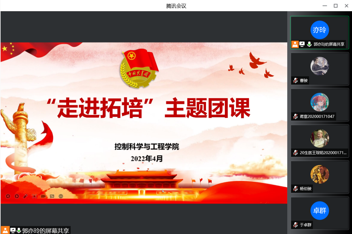 为认真落实《山东大学关于修订本科人才培养方案的指导意见(2020)》以及《山东大学学生素质拓展培养计划实施方案》精神要求,全面实施素质教育,培养德智体美劳全方面发展的社会主义建设者和接班人,4月21日,控制学院线上召开“走进拓培”主题团课,2020级辅导员郭亦玲担任主讲人,300余位团员参加团课。