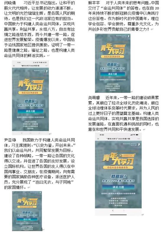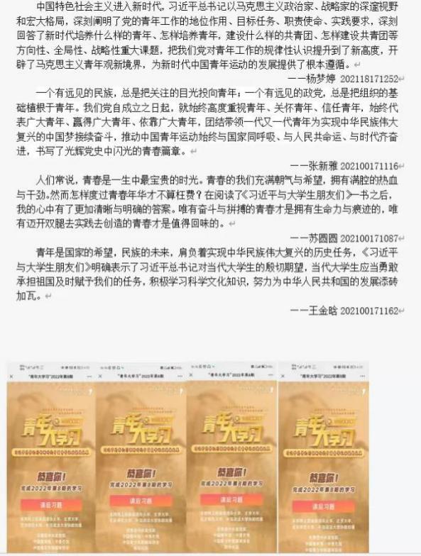 “青年大学习,我们一直在路上”打卡活动。控制学院积极响应学校号召,以青年大学习为思想政治教育的重要抓手,以宿舍为最小单位,创新教育形式,丰富育人载体,打造沉浸式、互动式的思政学习教育,全方位、多层次扎实推进学生思想政治教育。本次活动自开展以来,各宿舍成员互相监督,青年大学习完成率显著提高,成效显著。控制学院团委也将不断强化青年思想的政治引领,引导广大同学以更加昂扬奋进的姿态,为建团百年盛礼贡献青春力量。
