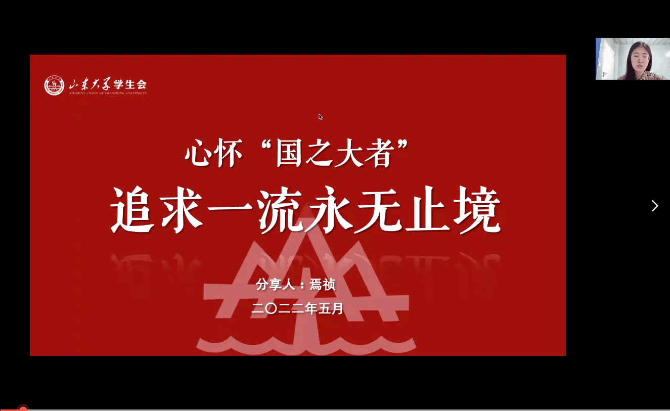 会议伊始,焉祯就如何更好地提升学生工作能力和工作效率,如何合理平衡学习和工作进行详细解答。她阐明了山东大学学生会的底气所在,以“健身”为例,针对建设什么样的学生组织、如何对学生会进行改革等重点问题提出切实可行的思路。同时,她结合自身经验分享“点、线、面”的工作技巧以提高工作效率。在活动开展方面,焉祯希望学生骨干能及时获取活动反馈,虚心听取学生意见,反思总结不足,总结传承活动经验,按照“五育并举”的工作目标开展活动,全方位服务学生成长成才;在学生工作方面,焉祯通过“二八法则”剖析工作重心,统筹兼顾、革故鼎新、提质增效,探索学生会建设新思路新模式;在学习生活方面,她以自身经历为例建议成员合理规划时间、增强执行能力、减少“无效生活”时间。讲座最后,焉祯提出要根据自身的目标和需求,制定个人学涯生涯规划。
