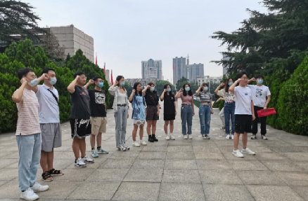 莱芜战役纪念馆参观结束后,党员同志在革命烈士纪念塔前面向党旗重温入党誓词,铿锵有力的誓词传达出身为共产党员的使命感,同时也展现了青年学生党员为党和国家奋斗终身的志气和决心,进一步增强了同学们的责任感与荣耀感。