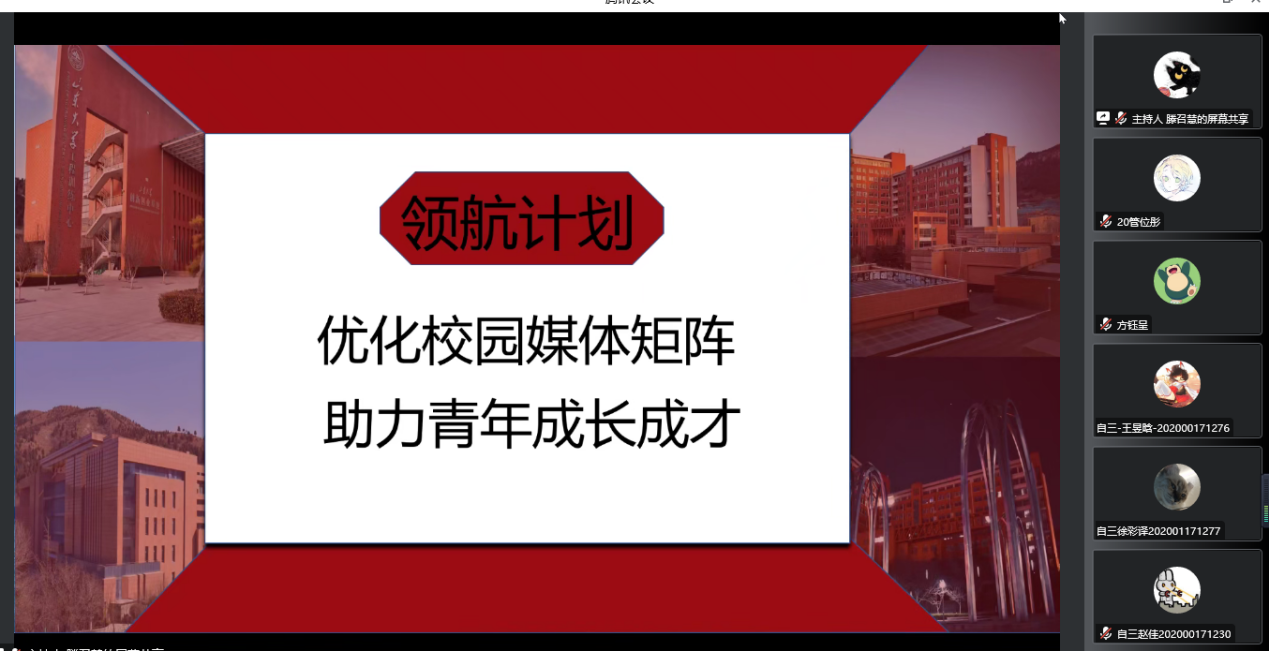10月21日,控制学院举办“青春献礼党的二十大,同心逐梦青年新征程”领航计划系列之“优化校园媒体矩阵·助力青年成长成才”主题讲座。山东大学电气学院辅导员方华、新闻传播学院2022级硕士生党支部书记万钊廷担任主讲人。