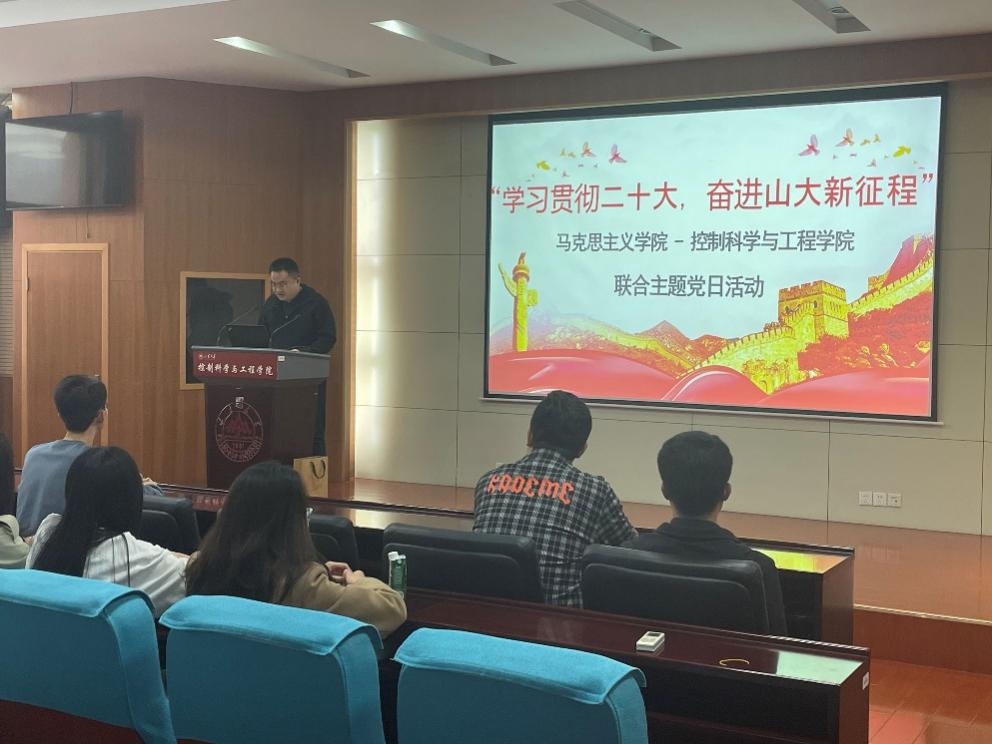 为引领新时代青年党员深入学习贯彻党的二十大精神,10月26日马克思主义学院联合kaiyun开云官方网页版于千佛山校区四号楼302报告厅举办“学习贯彻二十大,奋进山大新征程”主题党日活动。控制学院党委副书记李文振,马克思主义学院研究生学生党支部党员代表,控制学院研究生学生党支部党员代表共同参加本次主题党日活动。