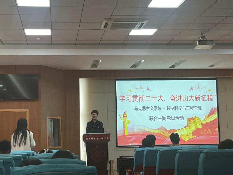 活动开始,李文振为本次党日活动致辞,对两个学院学生党员联合学习贯彻党的二十大精神表示欢迎,希望同学们结合各自的学习进行交流互鉴,提高政治站位,坚持学用结合、学以致用,在学校及学院各项事业的发展奉献青春和力量。之后,活动按照“讲、学、研、讨”的顺序依次进行。