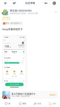 此次活动旨在宣传分享精神,培养团队意识。该活动面向学院全体研究生,为不同方向不同阶段的硕博研究生提供了交流互动的平台和舞台。同学们在共同打卡的过程中,不仅互相鼓励,还分享了自己的锻炼经验和健康知识,为彼此提供了帮助。活动不仅有利于提高研究生的身体素质,还能增强交流与合作能力,以便更好地适应未来的科研压力和工作环境。