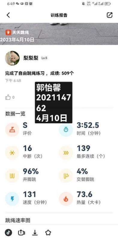 为丰富研究生的校园文化生活,提高身体素质,培养同学们的自律意识,控制学院举办了研究生“春来万物生——健康运动打卡”活动。该活动从4月9日开始,于4月30日结束,153位同学积极参与。