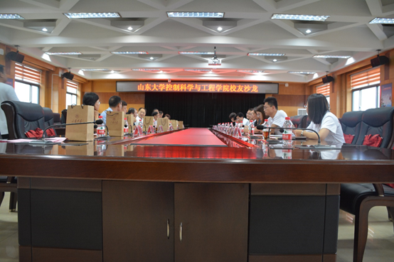 本次沙龙活动包括校友分享讨论、学院领导致辞和采访环节。下午3时许,吴晓晴老师宣布本次校友沙龙开始。吴老师首先简要介绍了控制学院近来的发展情况、本科学科发展和学科建设等,校友们纷纷为母院近年来取得的飞速发展而感到自豪。紧接着来自潍坊市各行业的优秀校友分别进行了自我介绍,谈及了自身的职业发展情况,分享了和母院的点滴并提出了中肯的建议。