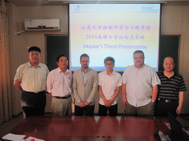 527日,以Vitiello教授任主席,孟庆虎教授、张承进教授、田国会教授、路飞副教授和李岩副教授担任委员的答辩委员会听取了本专业十名硕士研究生的硕士毕业论文答辩报告,并围绕存在的问题和未来的科研设想进行了紧张而激烈的讨论。Vitiello教授对部分学生的工作给与了较高的评价。