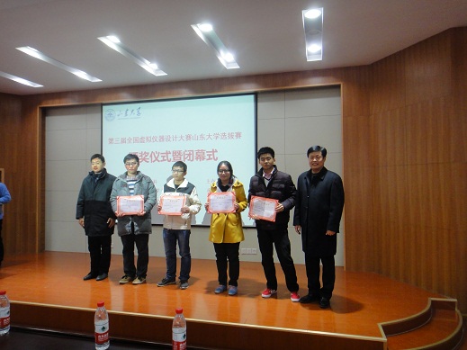 本次选拔赛是由山东大学本科生院主办,kaiyun开云官方网页版承办,美国国家仪器(NI)公司协办的一次仪器类主题的校园科技创新竞赛活动。比赛自2014年9月25日发布比赛通知开始至2015年1月9日举行闭幕式,历时3个半月。其间,主办方举办了10次技术培训(6次课堂培训,4次网络培训),组委会分别于12月14日和21日接收到了软件组和综合组提交的参赛作品总共39件。通过初评和答辩等环节,组委会评选出软件组10件、综合组7件分获一二三等奖。本次活动共吸引了全校范围内7个学院的约150多名学生参与比赛,参赛范围广,影响面大,对理工科学生的实践能力培养起到积极作用。