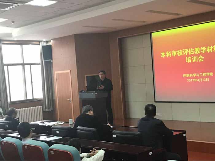 随后, 山东大学教学促进与教师发展中心李赛强副主任主持召开了培训会。学校咨询员刘广荣、控制学院咨询员李岩、控制学院咨询员李可对课程教学大纲、教学设计、教学日志等教学材料的设计方法进了培训,并以具体案例进行了演示。通过培训,教师们都理解了教学大纲、教学设计与教学日志对促进教学质量提升的意义,掌握了基本方法与技巧。最后,与会人员就本科教学评估工作作了深入交流。