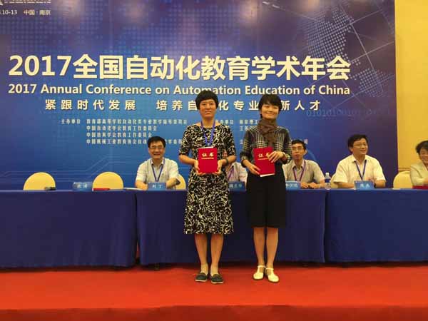 闭幕式上举行了优秀颁奖仪式,山东大学张承慧、陈阿莲等承担的教育部自动化专业教指委首批教改立项课题 理工复合型自动化精英人才培养探索与实践结题获优秀成绩。在教育部自动化专业教指委34个首批教改立项课题中只有清华,山大、浙大和厦大承担的4个课题获得优秀成绩。这表明山大理工复合试验班办对了,深受同行认可。陈阿莲代表山大课题组上台领奖。