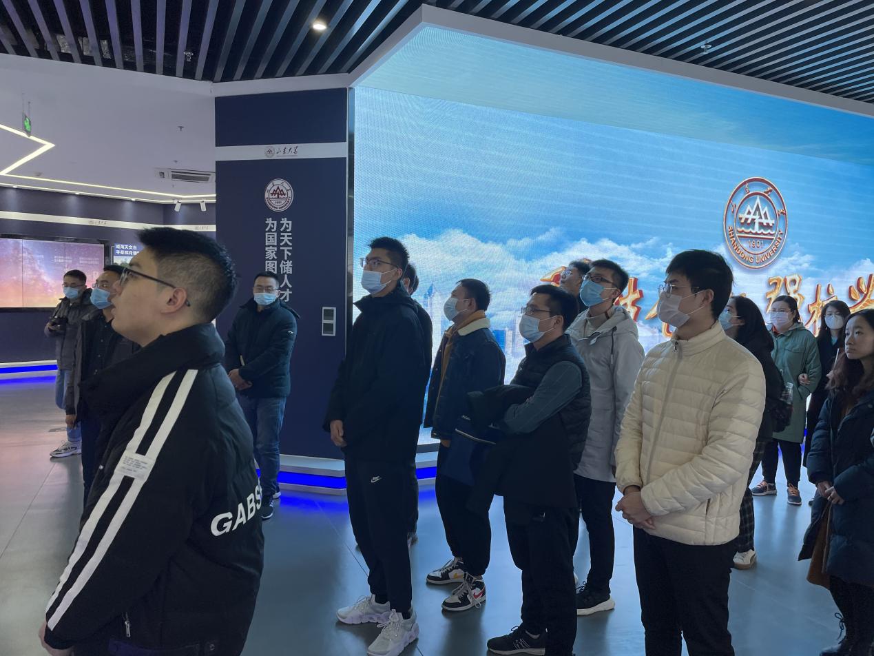 首先,全体支部党员共同参观山东大学科技馆,深入了解山大近些年取得的一系列具有极高转化价值的科研成果及其转化价值,深刻体会科技创新和科学实践的重要性,并从中汲取科技强国梦的奋进力量。随后,大家走进学生日常科研实验室和大型实验仪器平台,实地观察实验室管理具体情况,了解学生们的日常科研生活,并与实验室同学展开交流。在参观走访结束后,两个党支部围绕参观内容和实验室具体问题进行座谈。