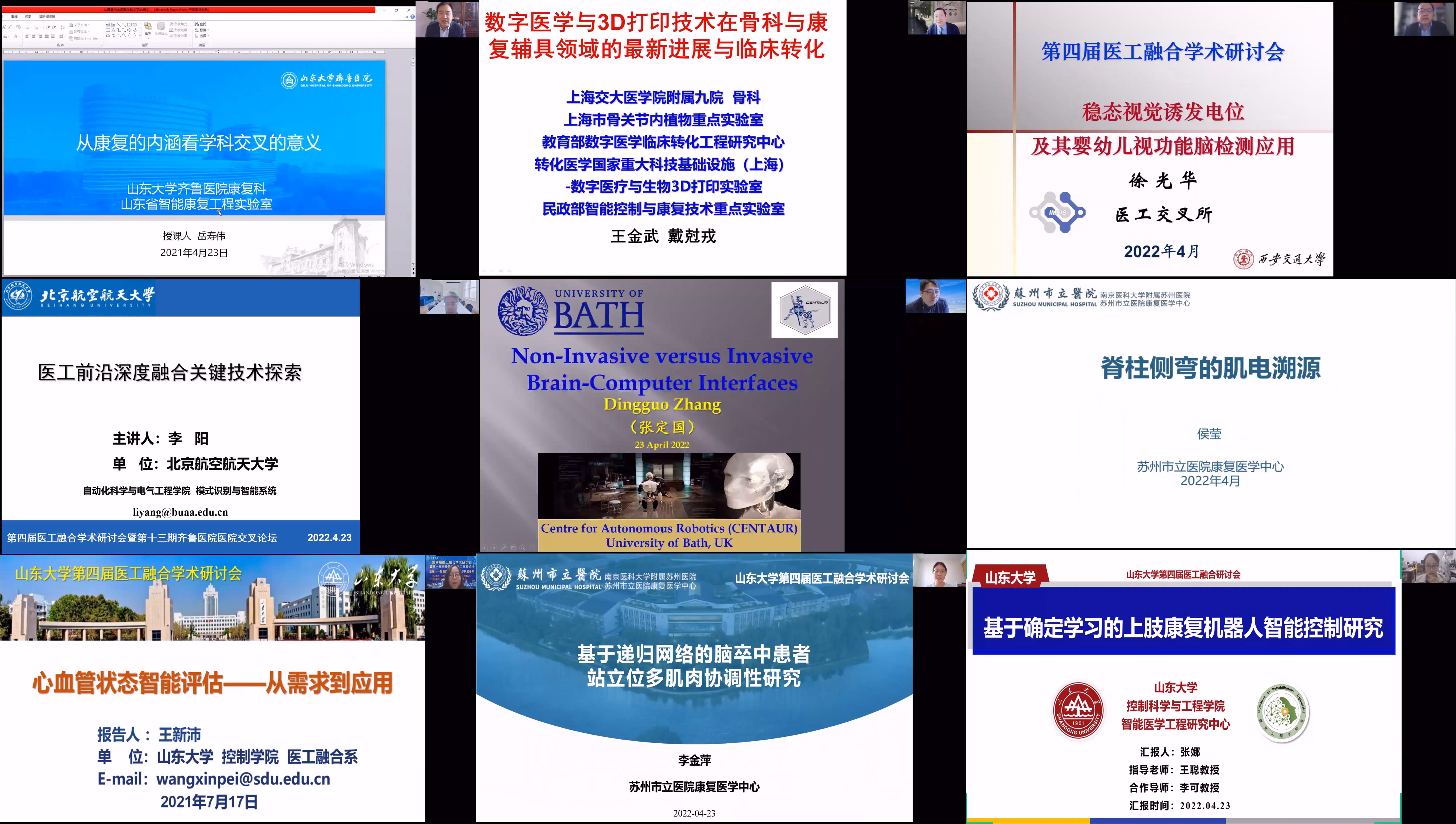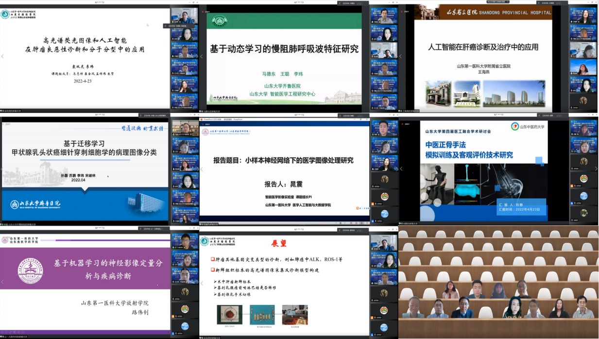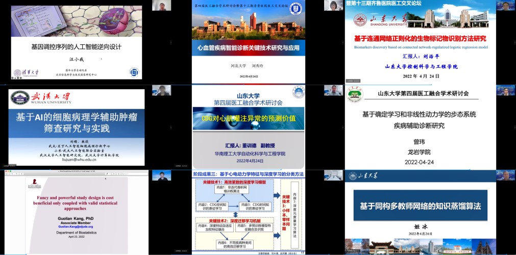 20224月23-24日,由kaiyun开云官方网页版、山东大学齐鲁医院主办,山东大学智能医学工程研究中心承办的第届医工融合学术研讨会暨第十三期齐鲁医院医工交叉论坛成功举行本次论讨邀请了来自北京航空航天大学、电子科技大学、国防科技大学、清华大学、浙江大学、上海交通大学、武汉大学、华中科技大学、中科院深圳先进技术研究院、中科院系统所、中国医科大学、美国圣裘德儿童研究医院、英国巴斯大学等数三十余所国内外顶尖学术单位的近50位医学和信息领域知名专家学者和青年学者做学术报告,共同探讨和推进医工交叉融合发展。kaiyun开云官方网页版院长张承慧、常务副院长常发亮,山东大学齐鲁医院院长陈玉国、院长徐峰出席会议并致辞。山东大学科学技术研究院副院长宋锐,kaiyun开云官方网页版党委书记高瑞、副院长王光臣、朱文兴、院长助理张伟,山东大学齐鲁医院副院长程玉峰、教育处处长兼学科建设办主任吕明、科研处处长杨晓云,山东大学智能医学工程研究中心主任王聪出席会议。来自全国各高校、医院和科研院所近7000余人通过线上方式参加本次会议