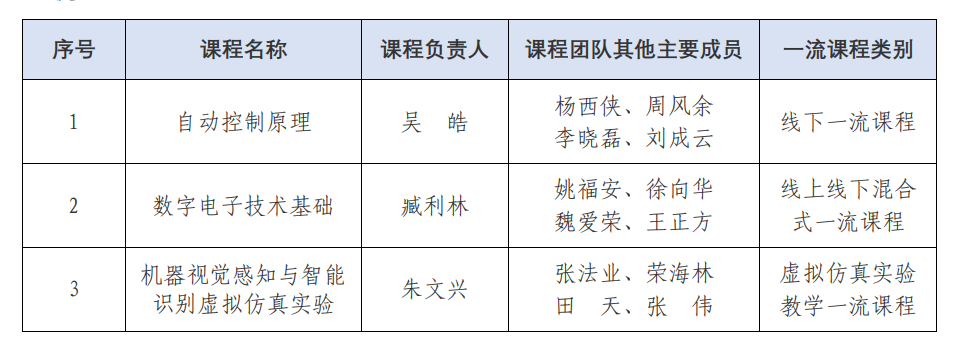 多年来,控制学院始终把立德树人作为人才培养工作的中心任务,坚决贯彻党和国家制定的教育战略、方针和政策,坚持人才培养和本科教学核心地位不动摇,不断强化基层教学组织建设,深耕课堂教学改革,加快高质量教育资源建设,依托教育教学改革项目,深入开展一流课程建设。历经多年探索与实践,学院一流课程建设取得重大突破。第一,科学规划,前瞻布局。早在2016年,张承慧院长在施政纲领中指出,学院要对标对表国内一流学科,坚持超前谋划,统筹推进本科教学质量提升工程,坚持把课程建设作为学院人才培养的核心基础要素,强化优势,补足短板,重点培育一批高水平课程。同年,启动名师精品课程建设工程,推动建立教学名师引领建设的精品课程体系。第二,精心选苗,定向培育。学院于2017-2019年间先后立项建设7门名师精品课程,16门线上精品课程,总共投入经费120余万元。经过五年建设,名师精品课程和线上精品课程建设均取得显著成效,不仅起到了良好的示范作用,而且具有较高的推广应用价值。本次入选的三门国家级一流课程均与上述建设项目密切相关。第三,强化组织,明确责任。学院制定并发布了课程运行规范文件,成立课程团队,建立负责人制度,明确课程建设主体责任。加强基层教学组织建设,开展教学研究,积极探索将基层教学组织建设与新工科教育教学改革、课程建设等重点工作相结合,定期召开一流课程建设经验交流研讨会,不断提高教师认识,提升课程建设水平。第四,出台政策,激励引导。学院通过修订本科教学业绩核算办法、职称岗位晋升条例、硕导博导遴选制度等文件,出台优秀教材建设奖等诸多激励政策,引导全院教师科教并重,破解了重科研轻教学问题。同时,建立科学考核评价体系,完善以质量为导向的课程评价机制,形成良性可持续发展的教学生态。