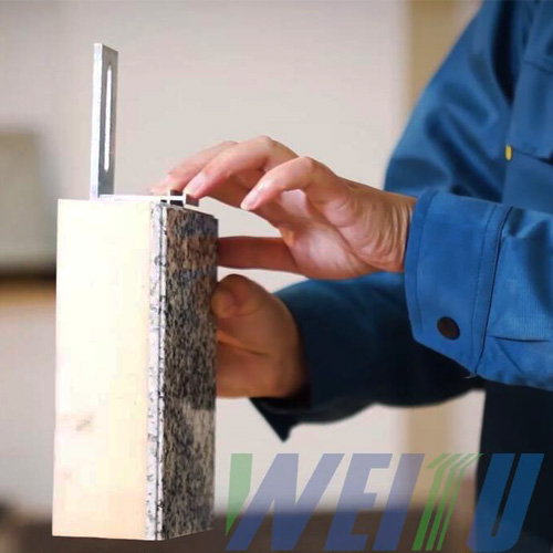 实验数据表明:装饰保温一体化的薄型石材粘贴加锚固墙面装饰,与钢质龙骨干挂外墙比较发现:5--8mm厚的薄型石材单位重量为每平方米10~15kg,粘贴后,单位墙面受重每平方米20~25kg,距离原墙面2~3mm,粘贴石材每人每天可操作完成10平方米以上,单位施工成本比普通石材钢龙骨干挂节约150-200元人民币以上。通过脱落安全检测实验表明:薄型石材的压缩剪切厚强度、耐温强度、耐水强度、耐冻融强度和收缩率均达到标准要求,节能环保优势突出。